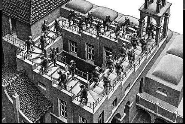 我觉得M.C Escher在《上上下下》这部作品很好地描述了职场——看似重复有规律可循,却有时候也不知道他意义何在。