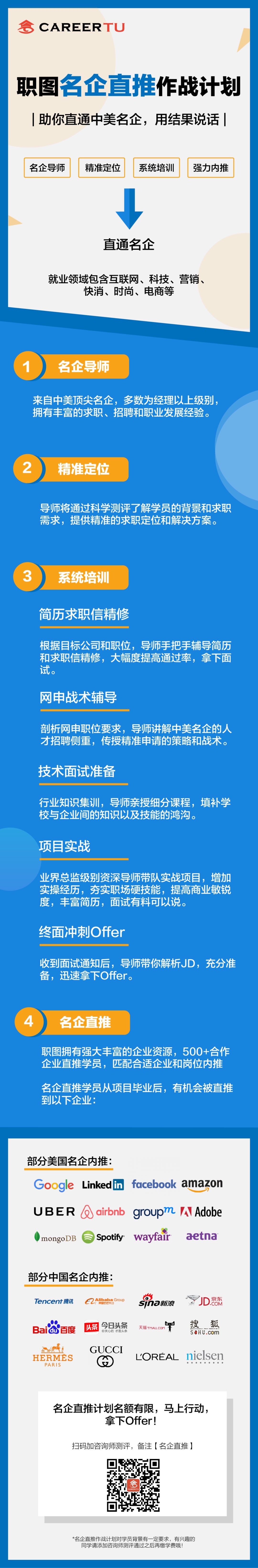 职图名企直推作战计划,通过科学测评和系统培训,帮助同学们提高求职软硬双实力。对名企直推作战计划感兴趣的同学,可以添加职图咨询师,预约求职竞争力测评。