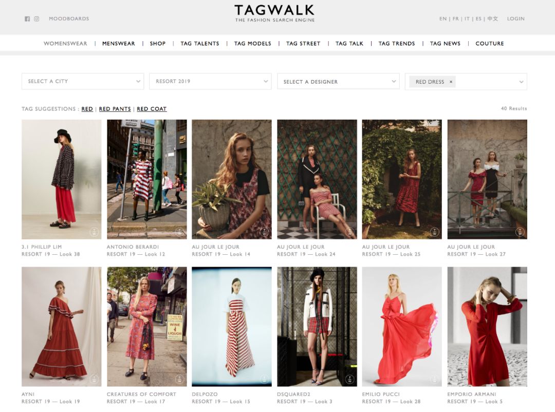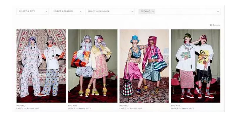 它数据库里的每一张图都贴了不同的标签,这样一来,就能够通过搜索关键词获得与巴黎,纽约,伦敦或米兰时装周相关衣服和配饰的资讯。是不是超酷的!它缩短了搜索时间,并且使搜索结果最大化。