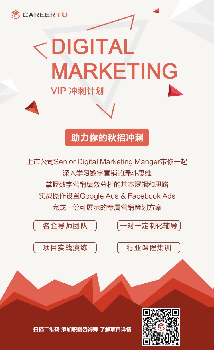 【职图Digital Marketing VIP冲刺计划】本周五(9月7号)就要开课啦,让职图导师帮助你提升综合实力,冲刺名企!扫码图片中的二维码,向职图咨询师了解项目详情。