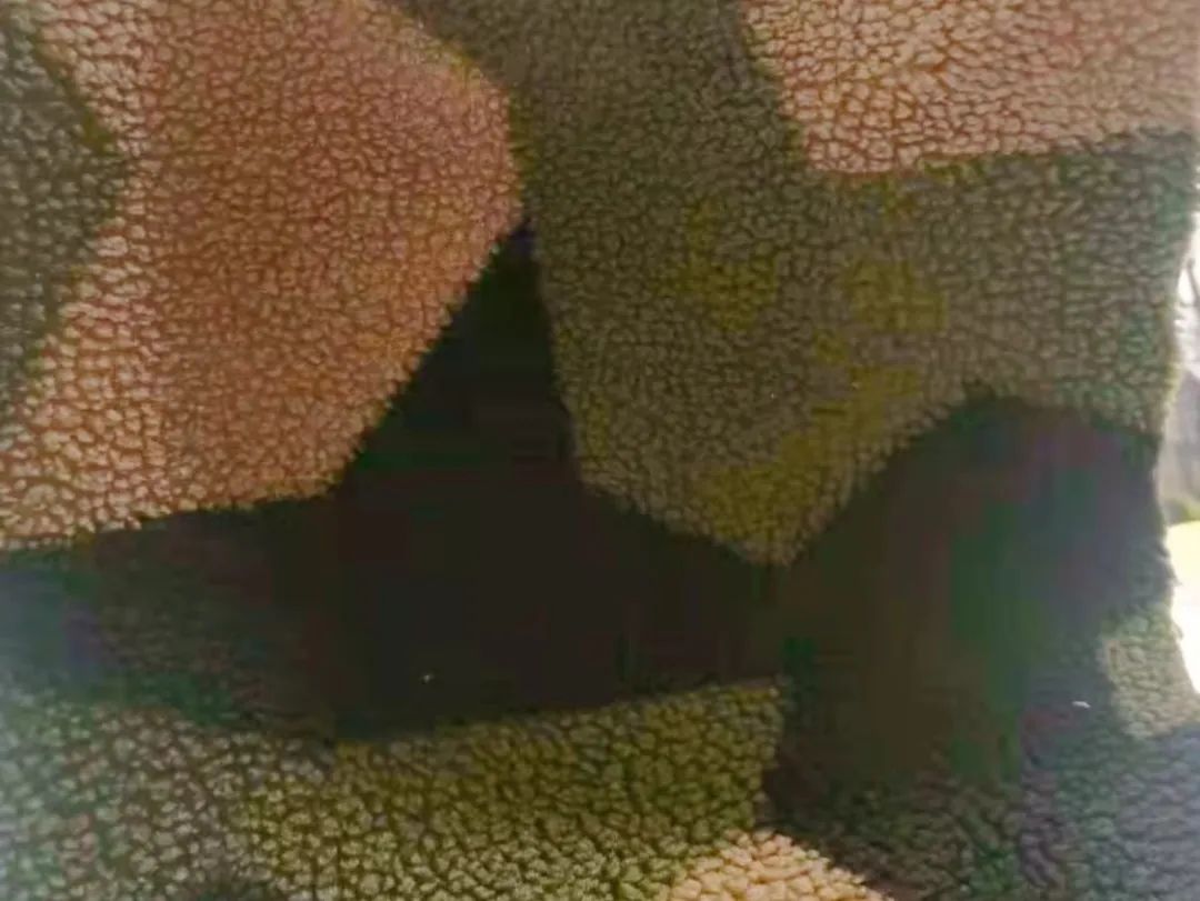该面料采用了纬编的工艺,使织物排列紧密,绒头根根直立、饱满,穿在身上时富有动感,同时还具备不掉毛的优点,非常适合作为户外御寒面料来使用,也可以广泛适用于服装,家纺,毛毯等方面。