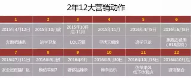 卫龙的营销从2016年开始在互联网和营销界崭露头角的。他们的营销步骤还是比较有节奏的。基本上是以极度为单位或者平均3个月做一次大活动,加上平时的一些小活动。所以他们的营销有哪些是可以值得餐饮们借鉴的?