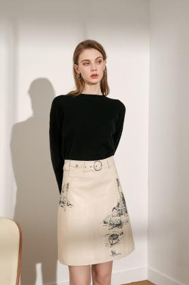 百搭款小A裙,腰节增加了包包装饰,采用了印花工艺,增加俏皮感。