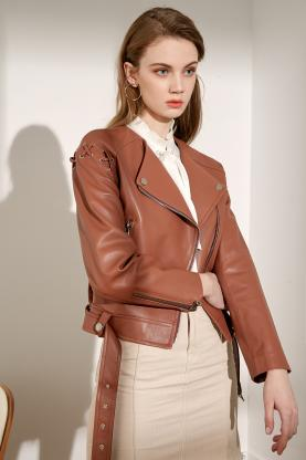 打破常规的机车夹克设计,通过领型和肩部细节处理,软化了机车夹克的帅气,增添女性气息。