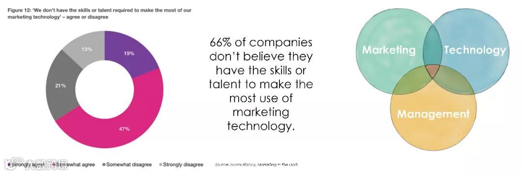 同时,另一项调查表明,66%的全球企业并不认为他们有足够的技能或是人才,来最大程度的利用营销技术,以及营销技术可以带来的种种潜力。