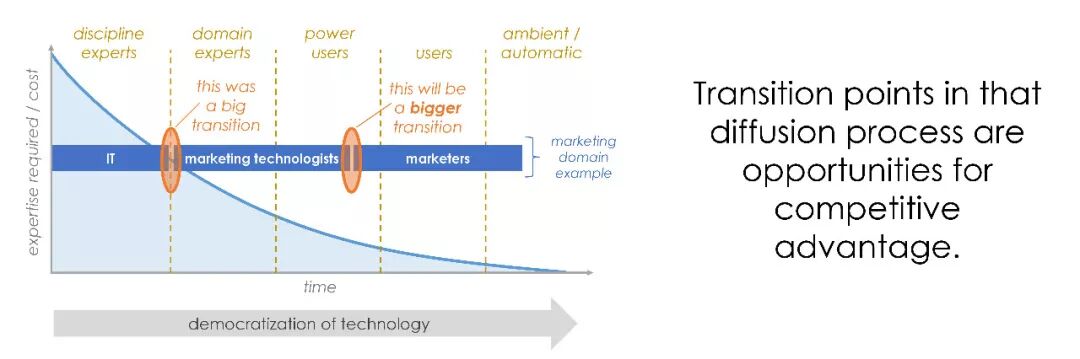 Scott特别强调了「超级用户」的概念,他们可能不是营销技术官,却可以很大程度的利用营销技术。技术越来越简便易用,普通人也可以成为我们的营销人员,也就是说任何人都拥有创造软件的力量。