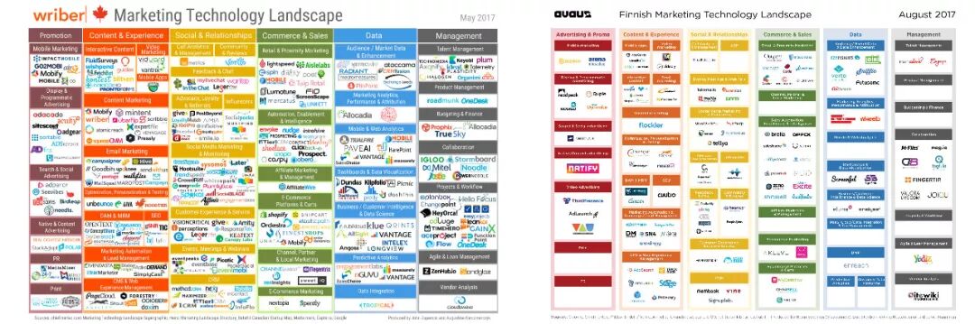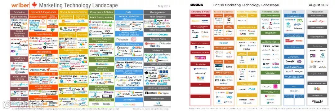 有趣的是,这并不是一个单一的现象。Scott介绍说,全世界各个国家都有类似的生态统计图,比如加拿大和芬兰。对,即便是芬兰这样一个小国家,也有很多营销技术公司。