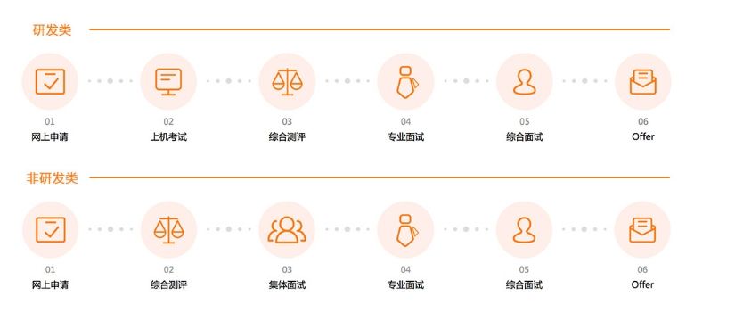 简历筛选--在线笔试--小组面试--HR面试--专业面试--在线测评--管理者面试