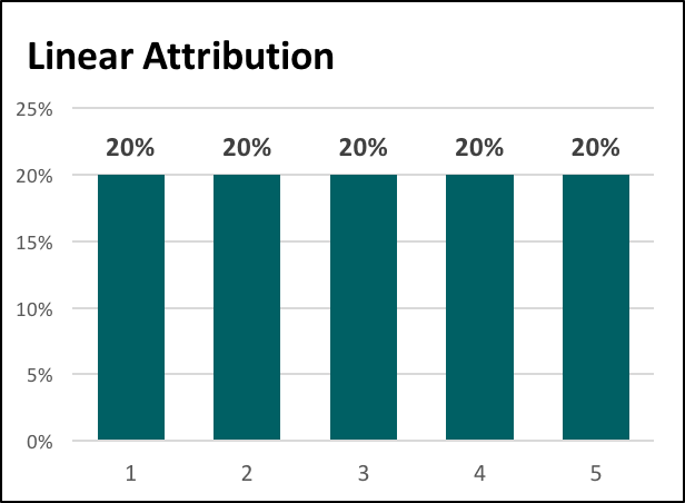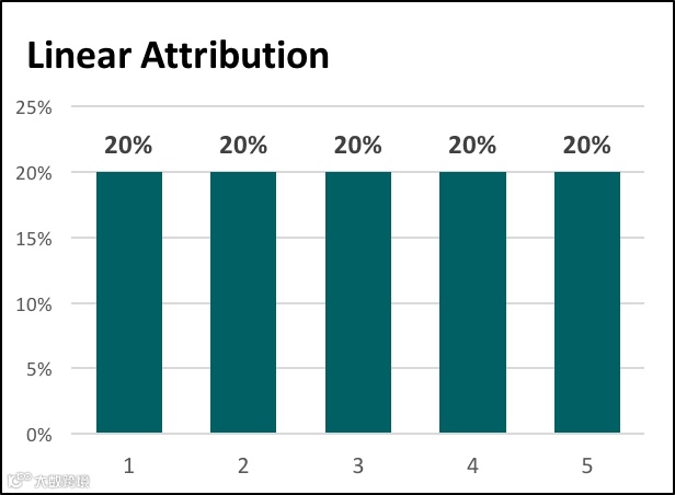 ● 衡量指标:Multi-touch下的 Evenly weighted 模型给每个渠道都平分功劳,不管不同渠道在整个购买的环节中起到的作用是不是不同。