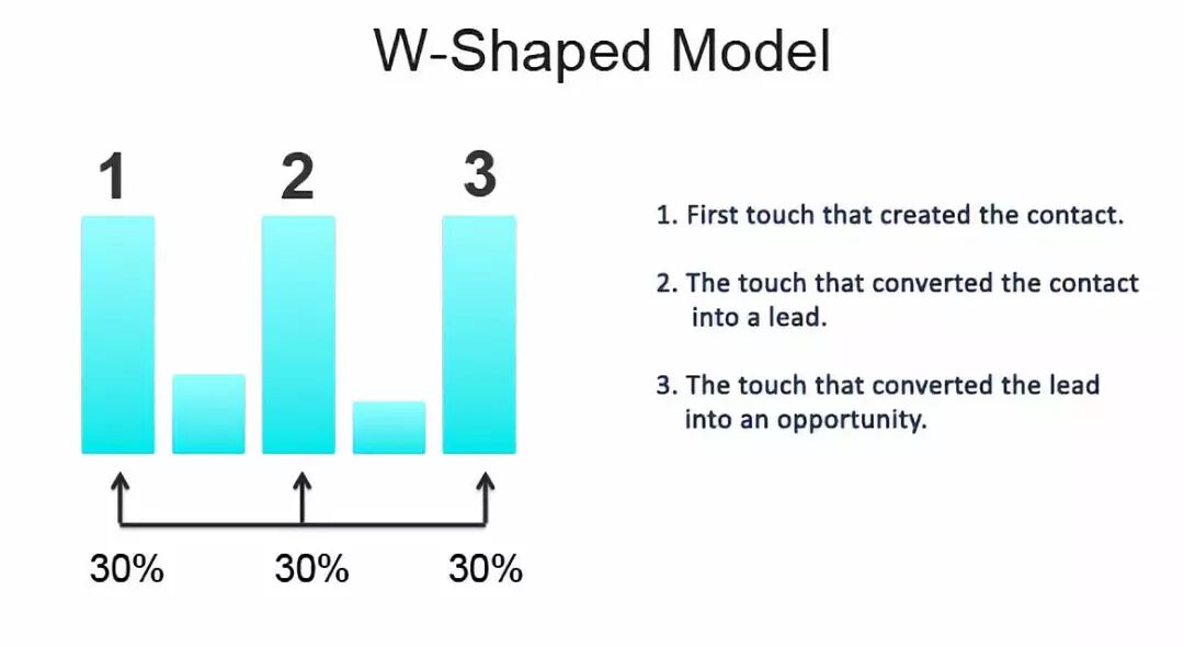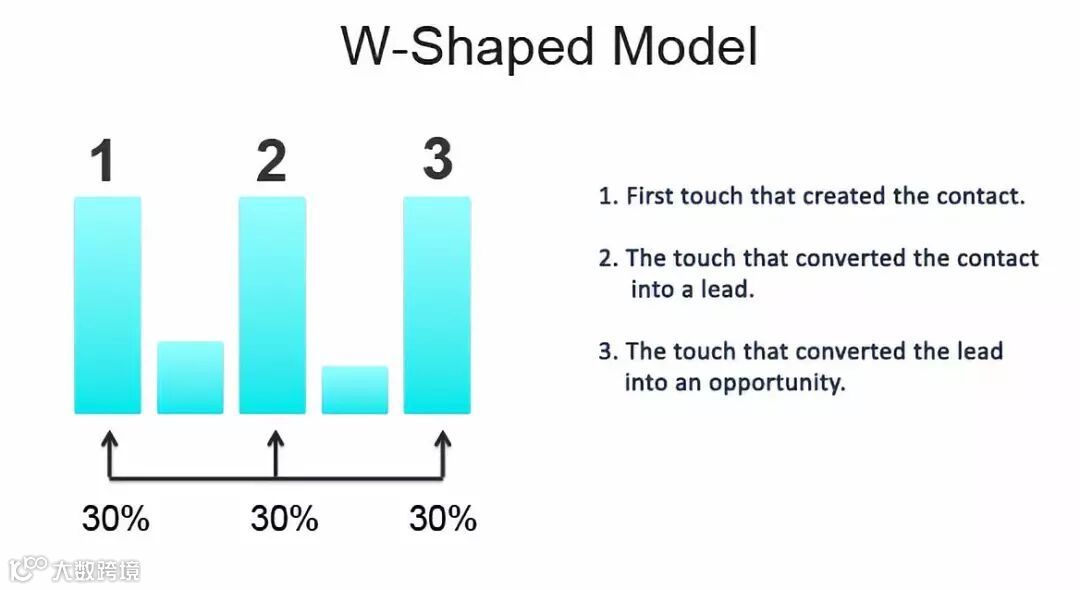 ● 使用场景:W-shaped对于那些在处理潜在客户上有着很规范流程的公司非常有用,因为只有这些公司才能在中间达到转化的渠道分配上,做到均衡和精确。