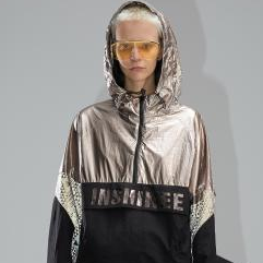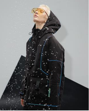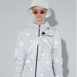 设计灵感来源于原宿风,是为18~30岁男性跟女性所设计的,选用灰白色搭配100%聚酯纤维面料组合,抗皱性与保形性良好,具有较高的强度与弹性恢复能力。表面银白色迷彩印花反光,视觉冲击强烈,具有一定的保护功能。