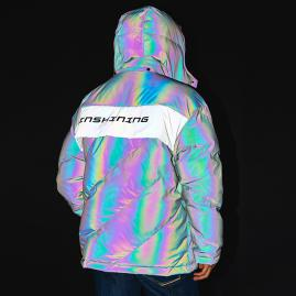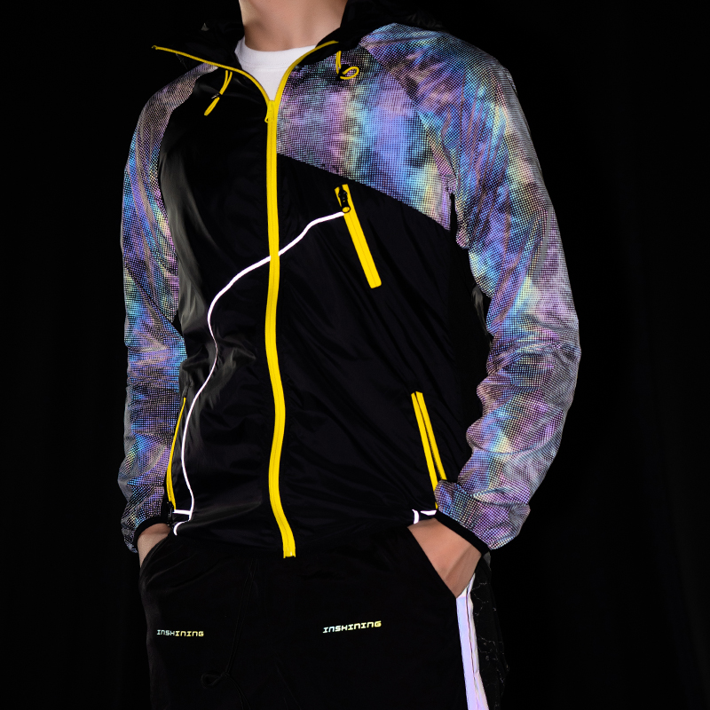 采用新型的七彩反光面料,视觉冲击强烈,具有一定的保护功能。