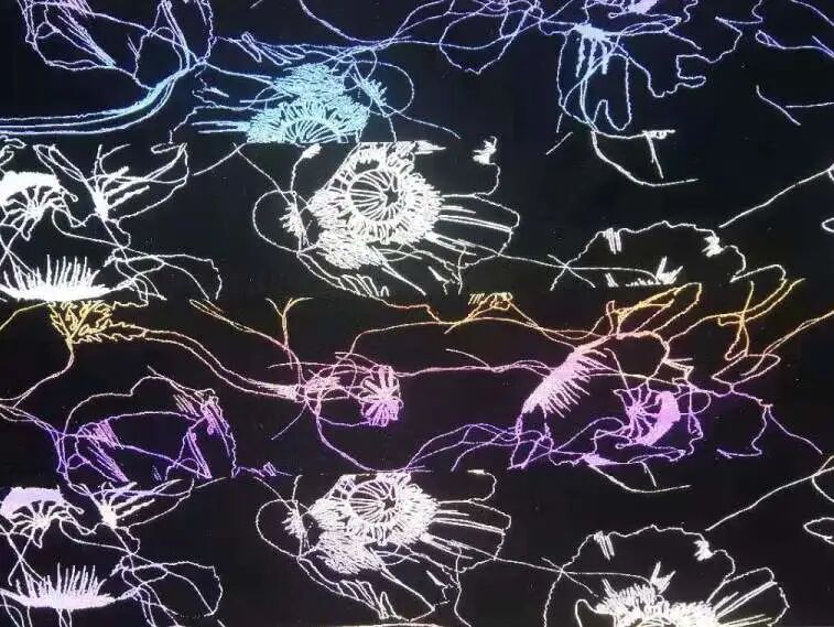 七彩线条花朵黑色布