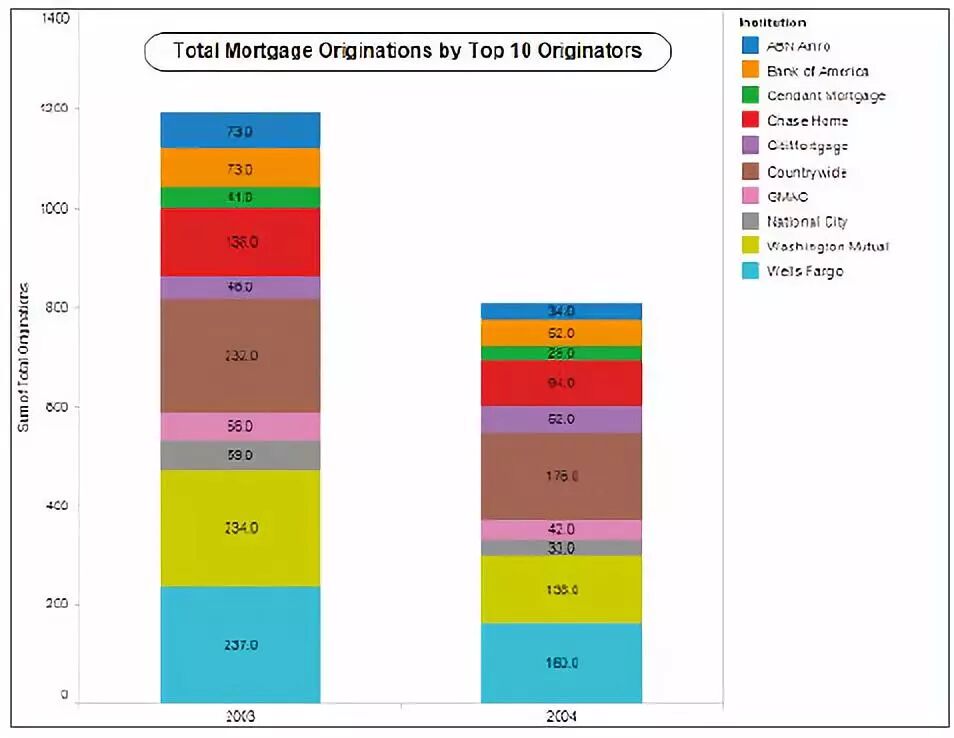 但是,直观信息还层层深入,展现更多信息,始终围绕主旨。还用颜色清楚标出有关主要按揭贷款发放者的逐年表现的数据。从表中可清楚看出每个彩色方框的大小如何变化,这表示按揭贷款减少情况。