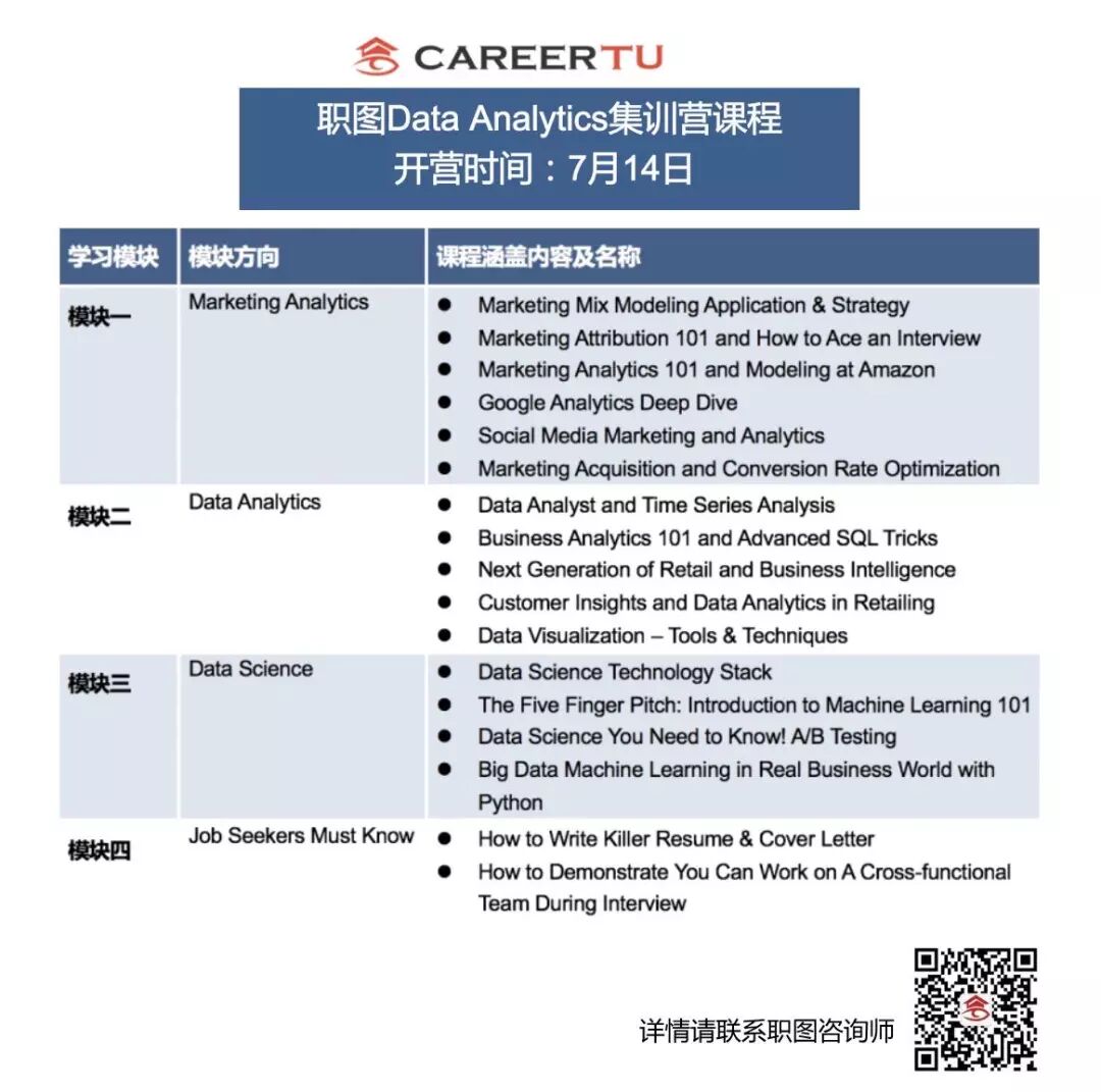 *长按扫描上图二维码,添加职图咨询师微信(careertututor),获取详细集训营课程表。