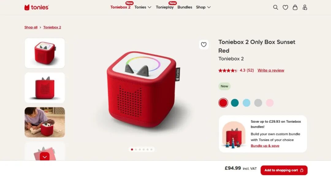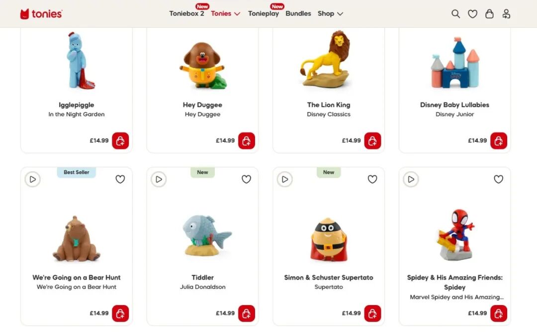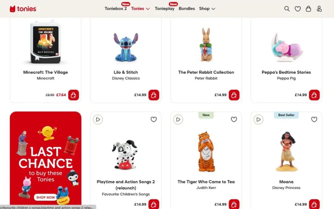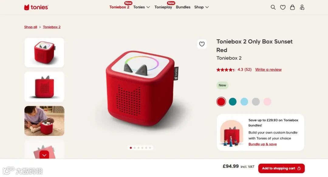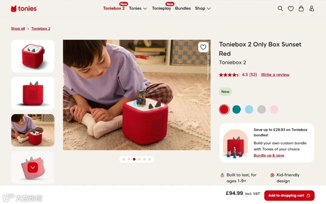 我们观察到,Toniebox采用Shopify平台构建其DTC体系,其业务发展表现出独特的成功路径。网站在视觉上充分拥抱其目标用户——儿童与家庭,运用明亮柔和的色彩、圆润的图标及可爱的产品图片,营造出充满童趣与亲和力的线上购物环境。