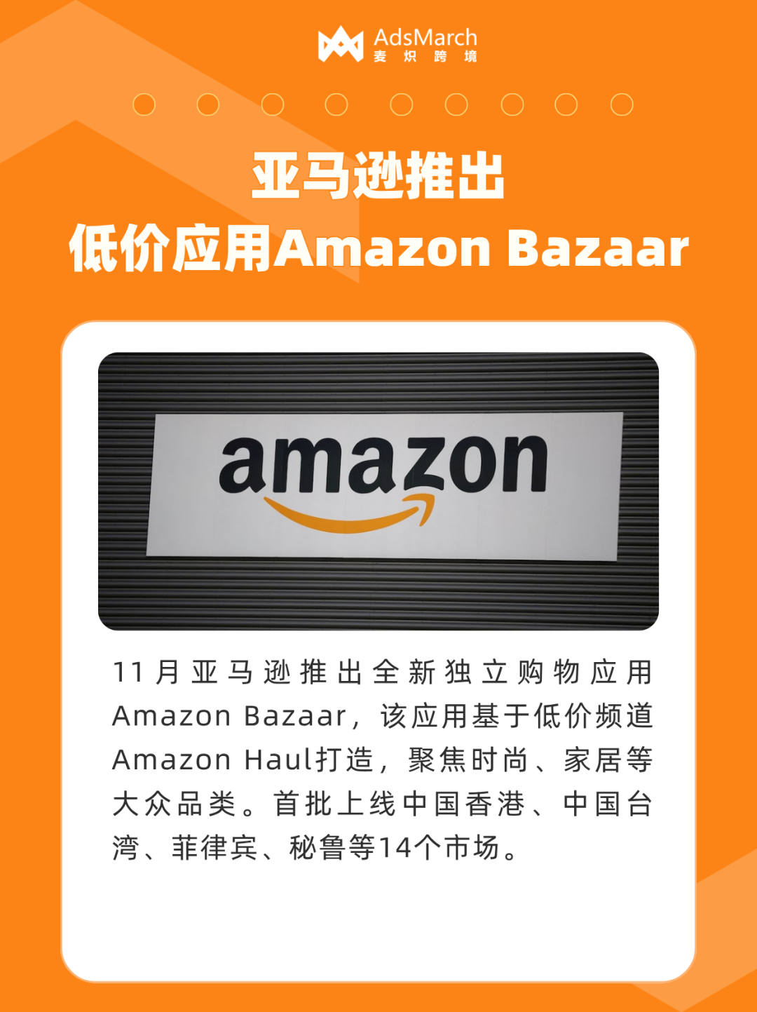 跨境周报 | TikTok Shop启动全球黑五三段式大促 、亚马逊推出低价应用Amazon Bazaar