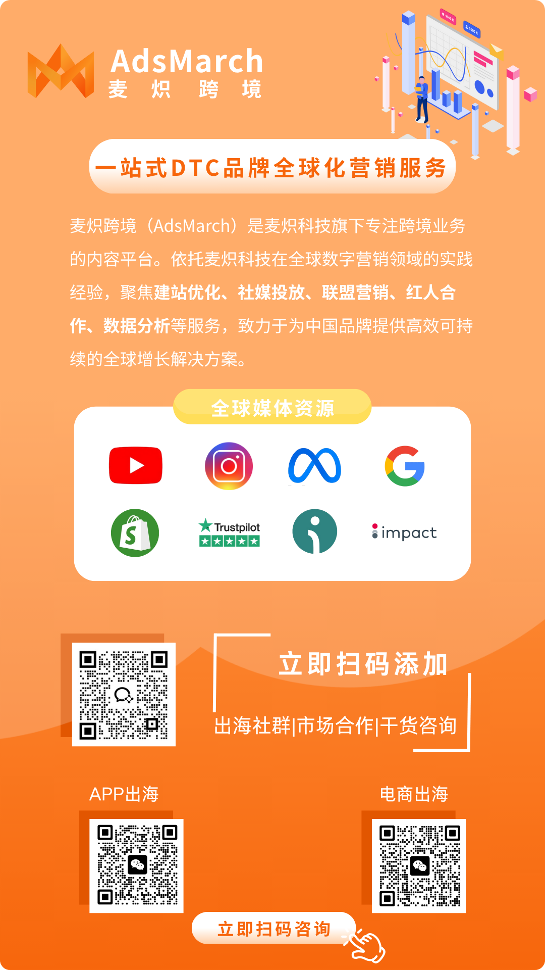 让世界看见中国品牌!麦炽跨境专注品牌出海全链路服务。提供一站式跨境解决方案,从网站搭建与运营,到红人营销与社媒运营,再到Google/Facebook/TikTok等全媒体广告投放,赋能企业实现品牌国际化与增长全球化
