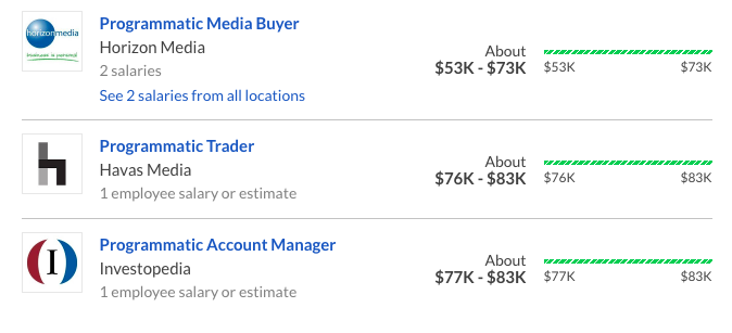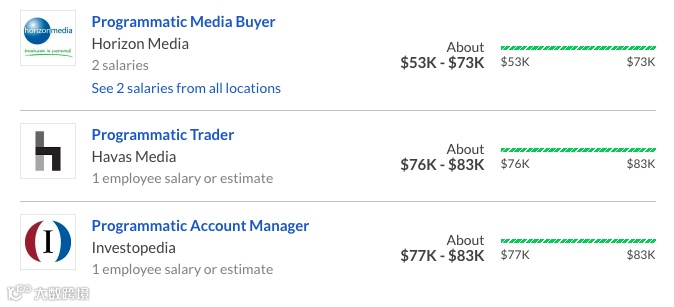 同时,在整个广告科技行业中,接触最前沿科技的乙方公司,也诞生了很多新兴热门行业,例如:Programmatic Media Buying, 薪资起薪可以达到60k。