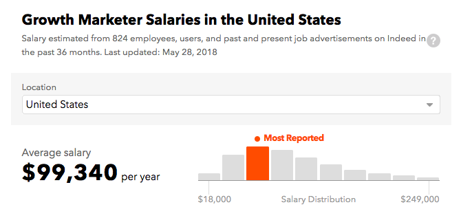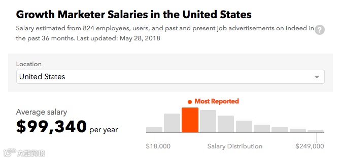 增长黑客:Growth Marketer/Growth Hacker全年薪资可以几乎达到六位数,但是一个好的增长黑客可遇不可求。