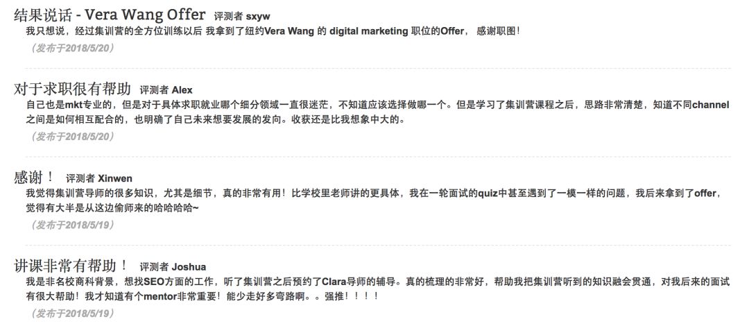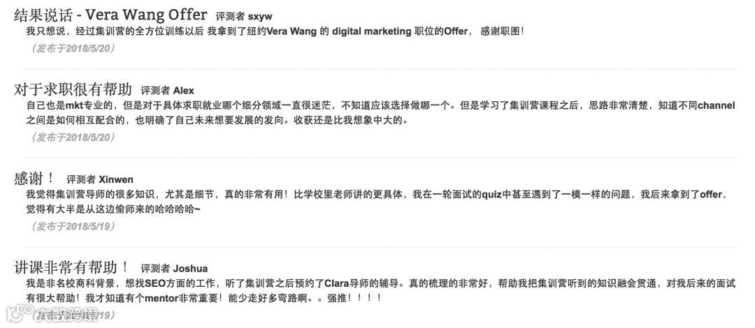 能够通过集训营课程的学习,快速全面学习北美互联网营销的不同细分以及就业发展,并且通过求职定位明确自己未来职业发展方向,为找到高质量实习打下基础。