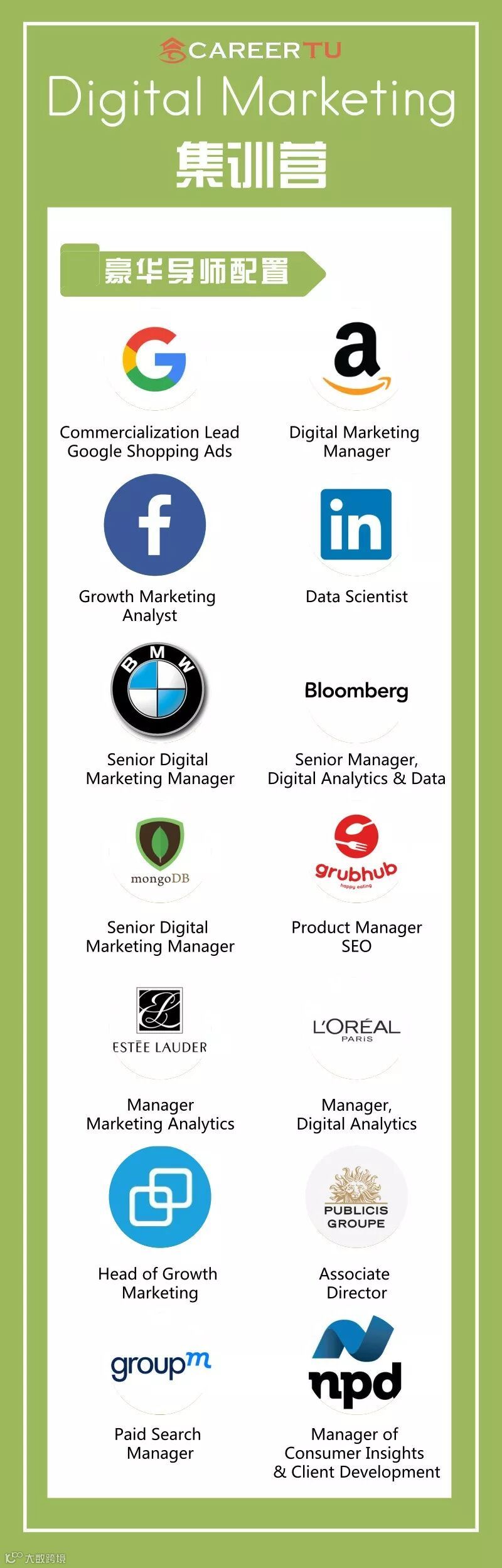 职图推出拳头产品“Digital Marketing集训营 Live”,让来自Facebook,Google,Amazon,BMW, GrubHub,Bloomberg,MongoDB,The NPD Group,Commbond等名企导师,用15天时间,提供最系统全面的讲解、分析以及指导,把你打造成理论和实践兼备的实操性互联网营销人!