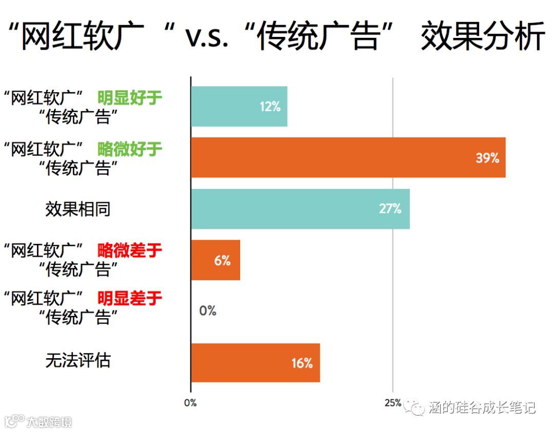 我们把,“网红软广”比“传统广告”,“明显好”的12% 和 “有点好”的39%加起来,那就是说,有51%的网红软广效果更好!