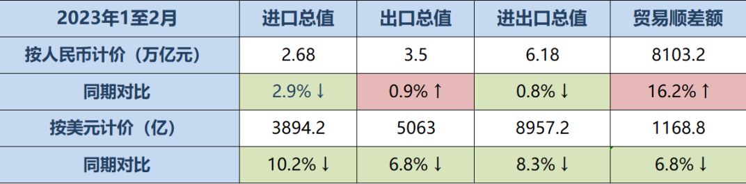 日前,海关总署公布了今年前两个月我国外贸进出口数据: