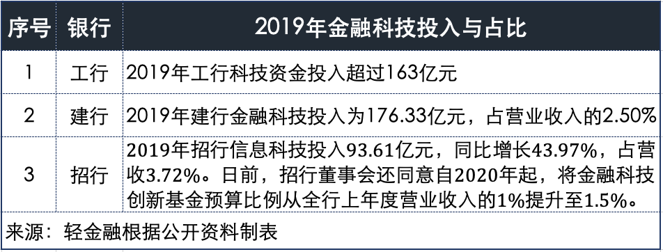 从三家银行2019年年报中有关金融科技的笔墨,也能看出金融科技转型决心。相对而言,工行、招行有关金融科技的篇幅和频度更为突出。