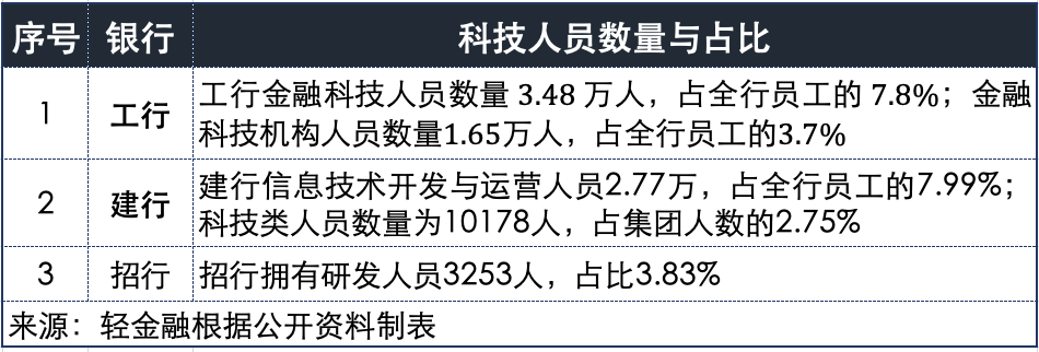 而从研发与科技投入、新技术平台与应用上,工行、建行的系统经过多年战略部署,表现出更强的竞争力,招行的科技投入高增速也是亮点。