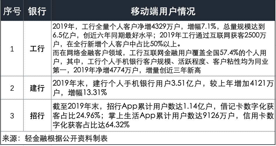从三家银行的年报来看,手机银行流量优势成为零售业务获客与经营的坚实基础。