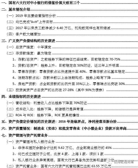 (一)国有大行基数较大,资产负债结构较为稳定,其规模、业绩、期限、价格与结构层面的微小变化更能体现最新政策导向、未来发展方向以及市场经营内涵,事实上监管政策方向主要针对中小银行,这意味着监管政策方向的标准实际上是向国有大行看齐。