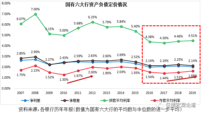 从资产负债定价情况的历史变化特征来看,国有六大行的净利差与净息差自2016年后开始下降至一个新的台阶,即净利差与净息差由2015年之前较长时期的2.50%以上高位水平落至目前的2.15%左右,造成这一结果的原因有三个: