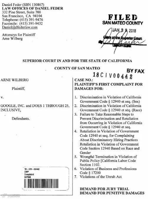 本案的原告是谷歌旗下YouTube的招聘人员Arne Wilberg,他声称在日常招聘筛选简历时,他被要求对所有LEVEL 3以下的亚裔男性、白人男性都不予录用,而他本人也因拒绝执行这样“即违法又带有歧视意味”的招聘原则而被解雇。