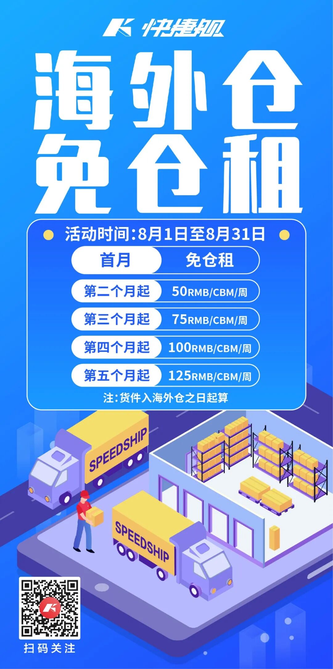 快捷舰自营美西海外仓,专注为快捷舰客户服务,高效处理货物,实现快进快出;高标准打托,旺季备货仓储以及复杂贴标等业务。多功能的海外仓满足客户的多样化需求。目前更有新客首月免仓租的活动哟!