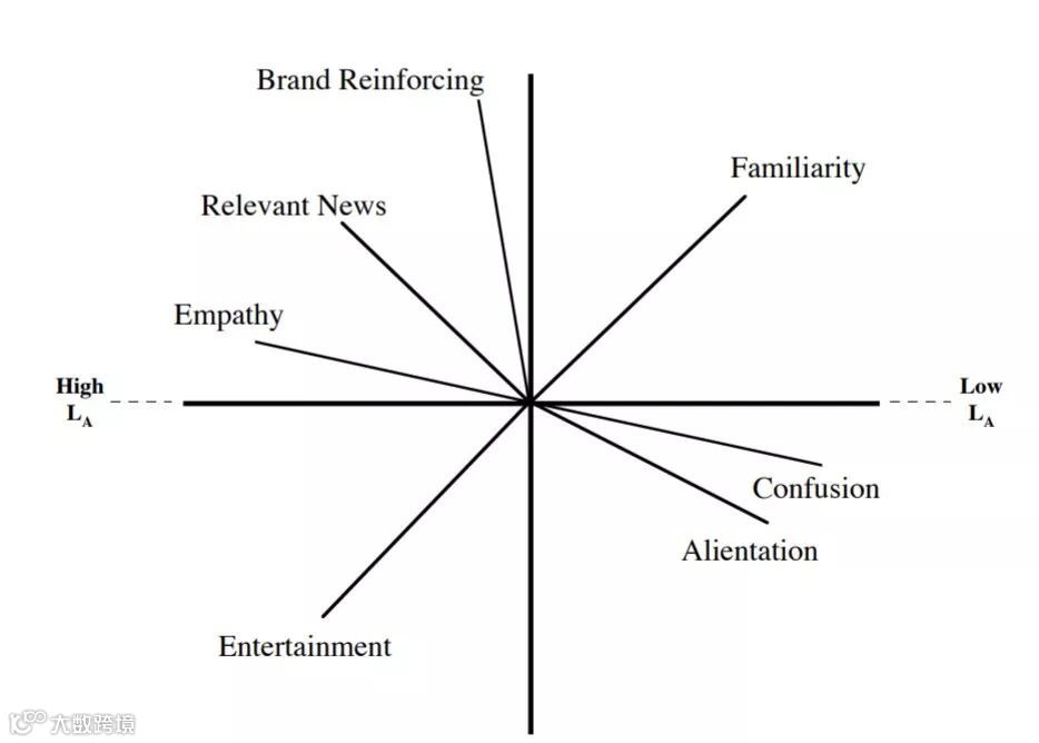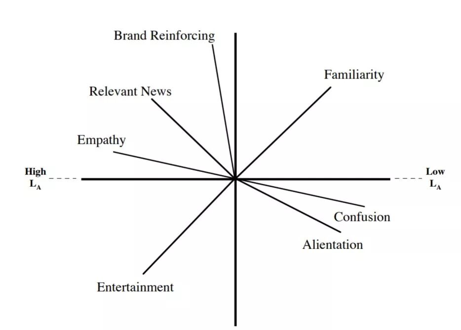 研究人员建立了所谓COMMAP Model来检测消费者对广告的likeability(好感度/魅力),结果显示那些过于熟悉的、难以理解的、和过于不熟悉的广告的表现最差。