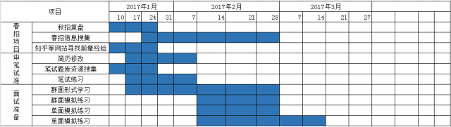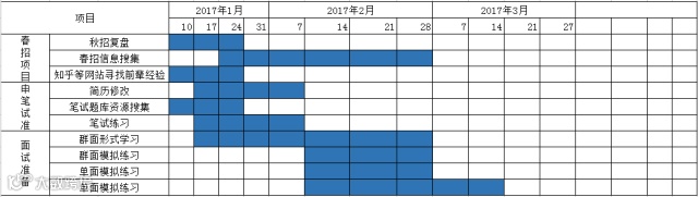 最后,春招一般一过完年(注意,是对公司来说过完年是大年初八,而不是你开学的时间)就会开始,那么倒推到现在还有一个月的时间,我建议你可以开始以周为单位进行计划,每个星期定出一个核心的目标并解决它。而不是等到春招开始后才开始思考自己怎么做,到那个时候就太迟了!