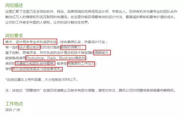我们可从上图看到这个岗位看重的相关专业、较好的专业基础、相关的实习经历、熟练的设计工具使用能力,这个岗位不看社团经历。