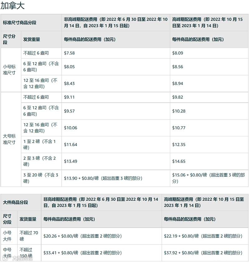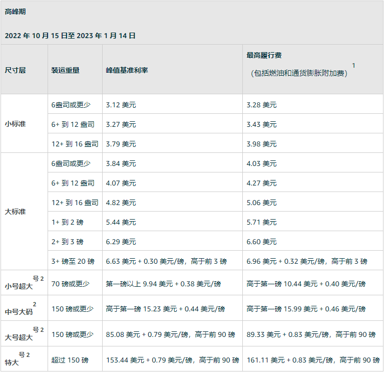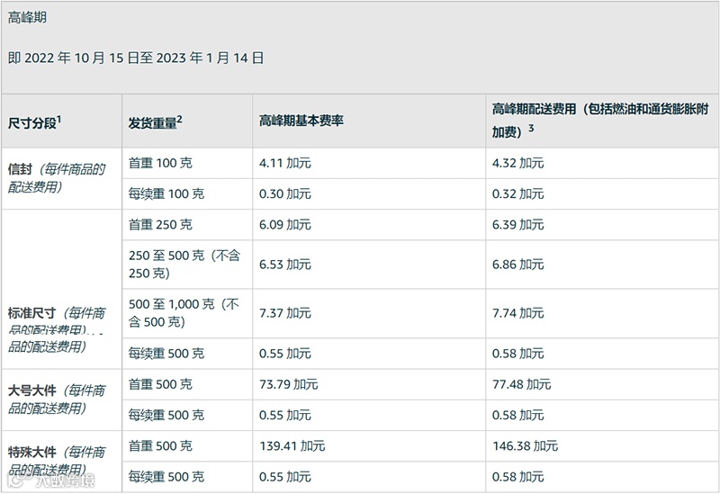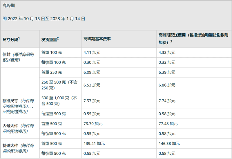 从2022年10月15日至2023年1月14日,亚马逊物流远程配送费用将按高峰期配送费用收取。