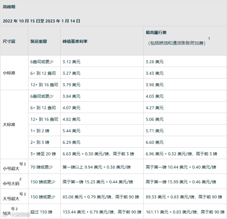 2023年1月15日,亚马逊物流配送费用将恢复为非高峰期费率。