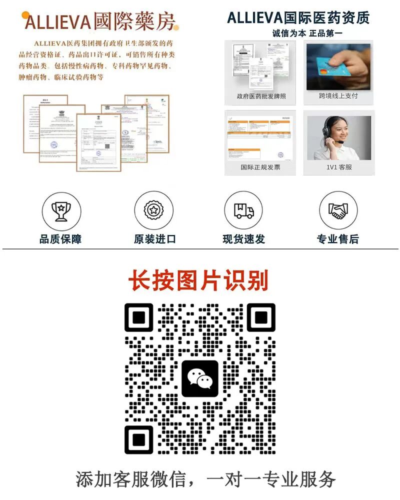 ALLIEVA医药集团是经卫生部批准的全球性医药服务商,具备全品类药品进出口经营资质。集团构建了符合国际药品流通标准的现代化供应链体系,专业提供处方药、罕见病药物、抗肿瘤药品等全分类医药产品,并通过香港前置仓实现高效跨境物流,致力于为患者提供安全、可靠、及时的医药保障。