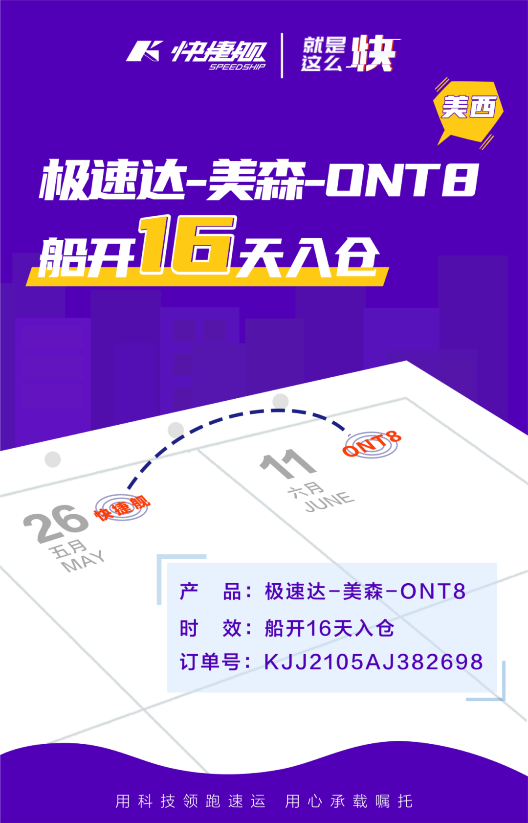 美西线:美西ONT8船开16天即入仓!极速达甄选美森船,船期稳定、卸港快!极速达可是我们快捷舰的王牌产品哟!时效稳定,入仓的速度极快!极速达就要这么快!