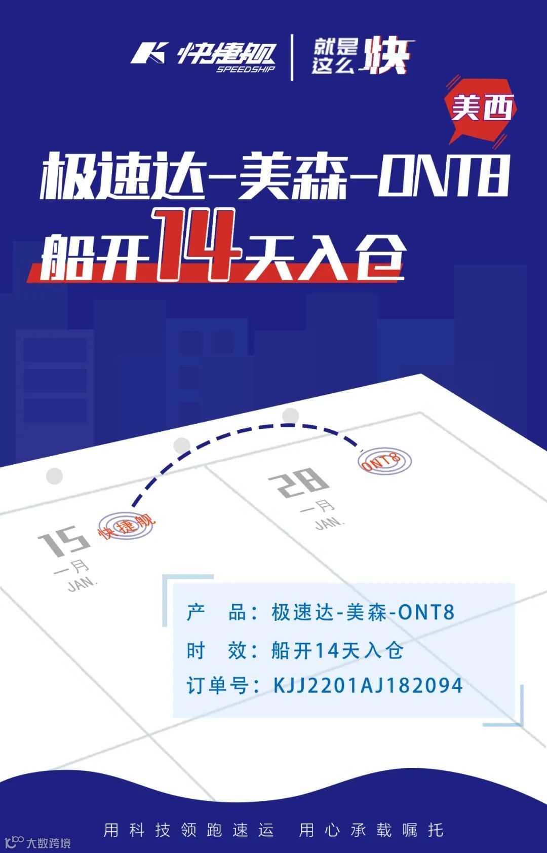 美西线:美西线时效惊人,开船后14天就可立即送仓ONT8。热门仓库还在等什么?赶紧下单入仓上架吧!快捷舰极速达产品,省心省时