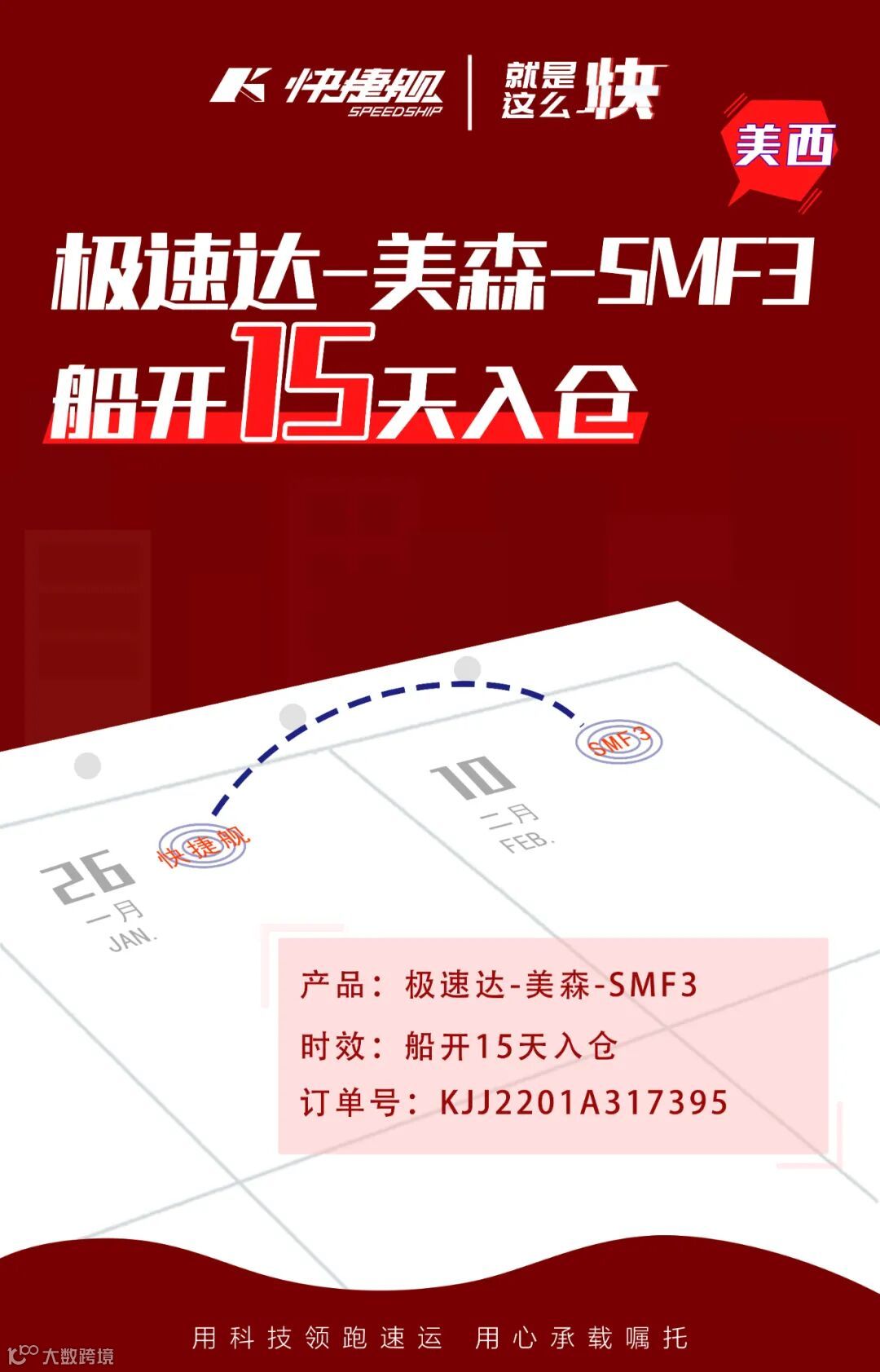 美西线:SMF3是热门仓库,也是最多人吐槽难入仓的仓促之一。SMF3最新时效反馈,船开15天入仓!就是这么快!选用的还是我们的慢必赔服务,安心!