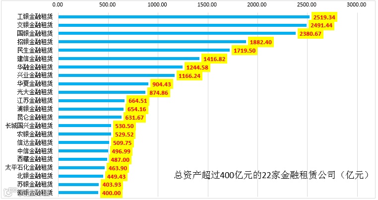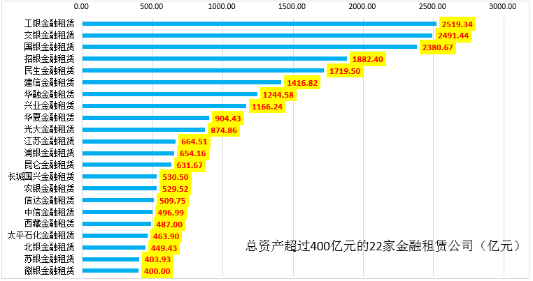 (三)总资产:达到3万亿元左右,8家金融租赁公司超过1000亿元
