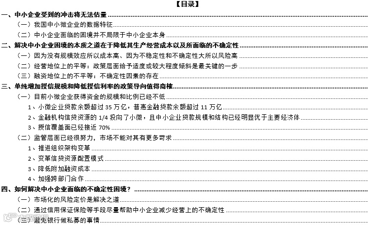这种情况下,政策层面能够做什么呢?那么信用保证保险的功能便可以得到充分发挥。例如对于外贸类中小企业,则可以借助出口信用保险来降低不确定性;而对于非外贸类中小企业,则各类保险公司以及其它金融机构也可以齐上阵。