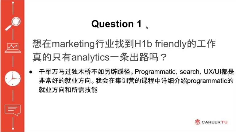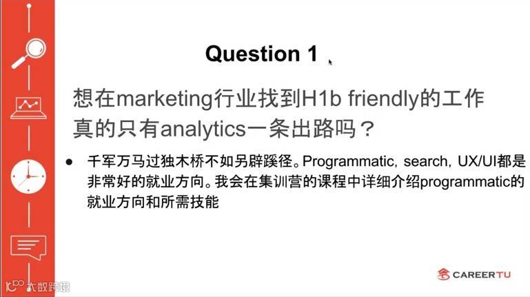 如果对数字、模型等比较有兴趣,Marketing Analytics确实是最有工作机会的方向,但其他方向如programmatic、search、UX/UI都是很好的选择;