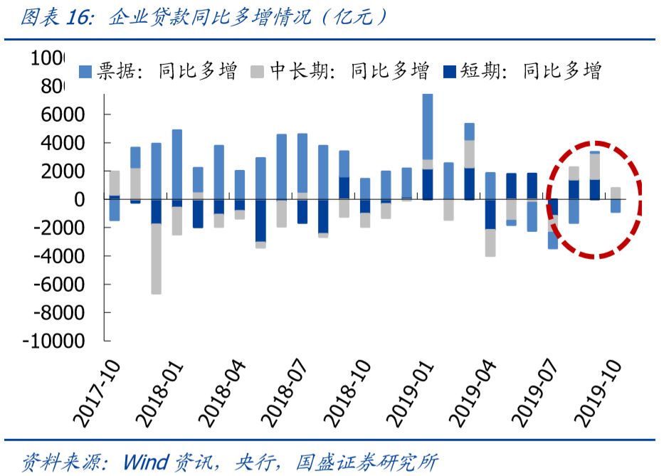A.信贷角度看,19年1-10月金融机构新增对公贷款(不含贴现)共计6.6万亿,已超过18年全年(上半年小微发力,带动短期贷款同比多增6000亿,下半年基建回暖,8-10月对公中长期贷款同比多增3500亿)。