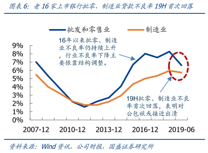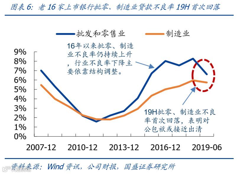B.结构上看:对不良贷款影响最大的两大行业--批发零售业、制造业19H首次出现不良余额与占比的“双降”。