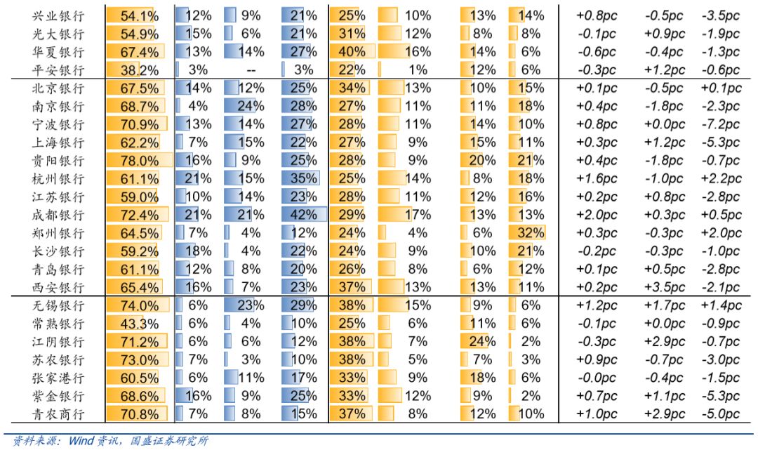 整体看,国有大行、城商行对公业务占比较高,股份行分化较大,个股代表包括工行、北京、中信、光大、兴业、贵阳、杭州等,具体来说: